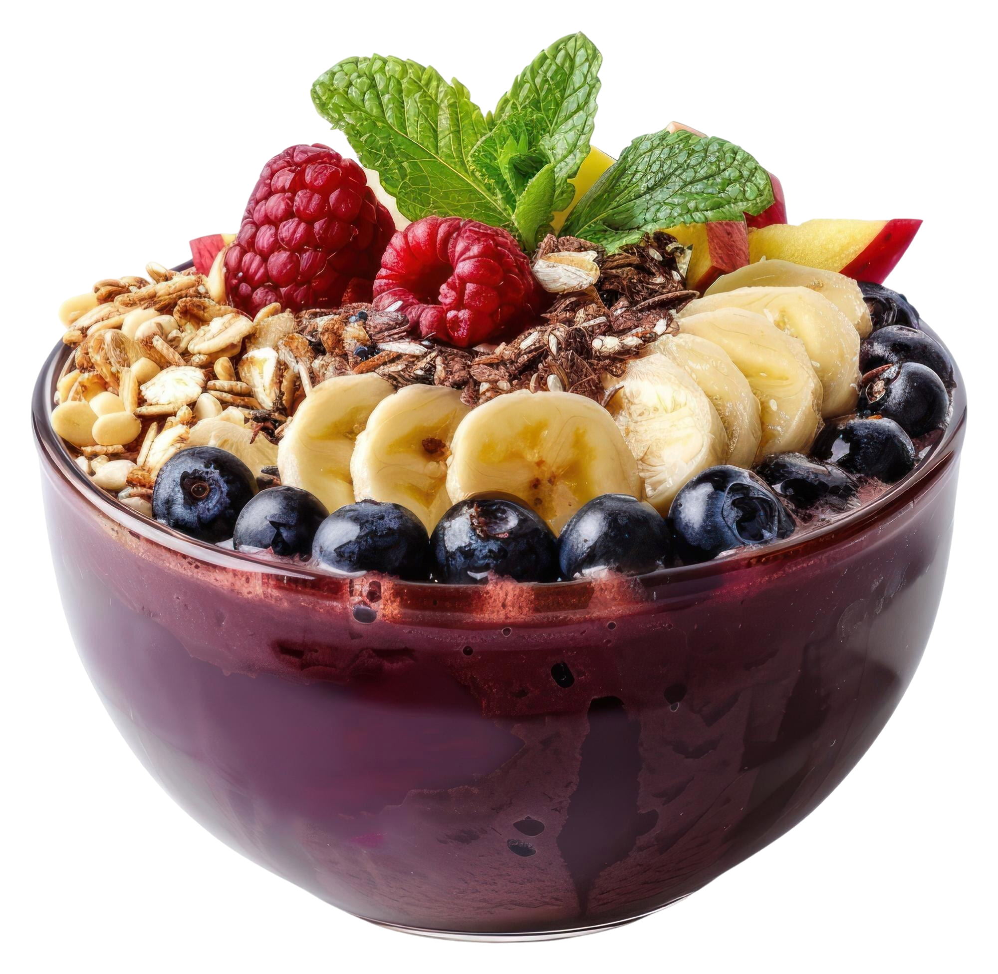We serve a variety of açaí treats, including Açaí Smoothies, Açaí Bowl, Açaí Mango, Açaí Coffee, Açaí Pistachio, and Açaí Strawberry.